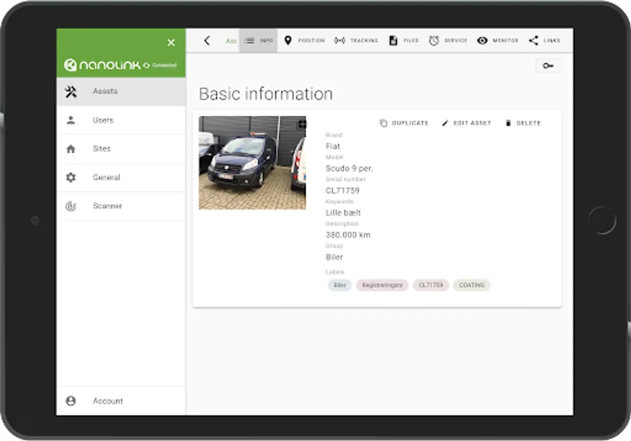It provides the same user experience as the Nanolink online web application, and includes essential features; scanning for tags and QR codes, with GPS capabilities.