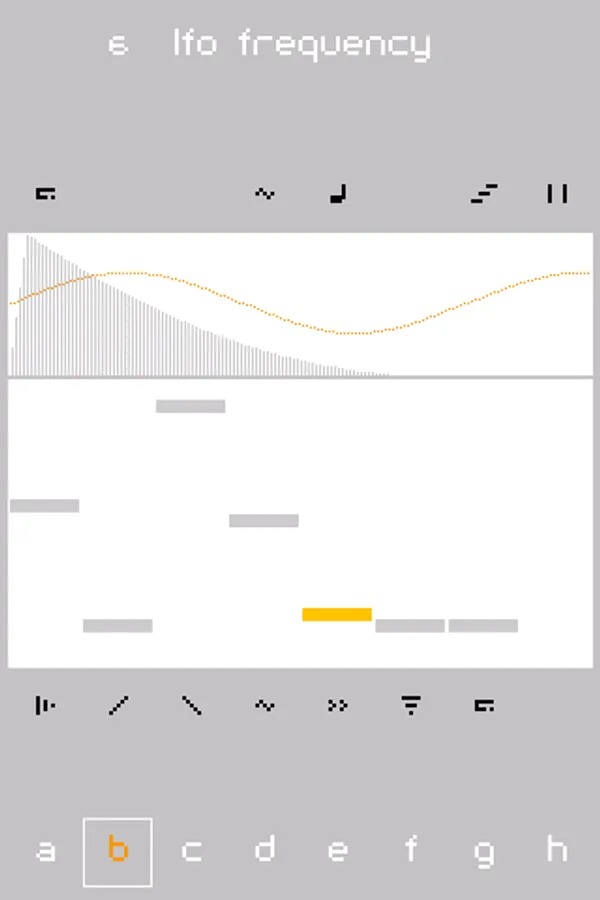 Nanoloop's FM synth offers a maximum of flexibility within a small set of parameters. It comes with a stereo modulator detune effect and covers the typical clean bells and Rhodes-like sounds, spheric pads, thick beats and basses and all kinds of exotic sounds and noises.