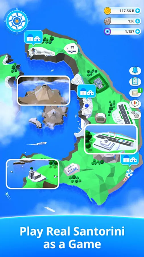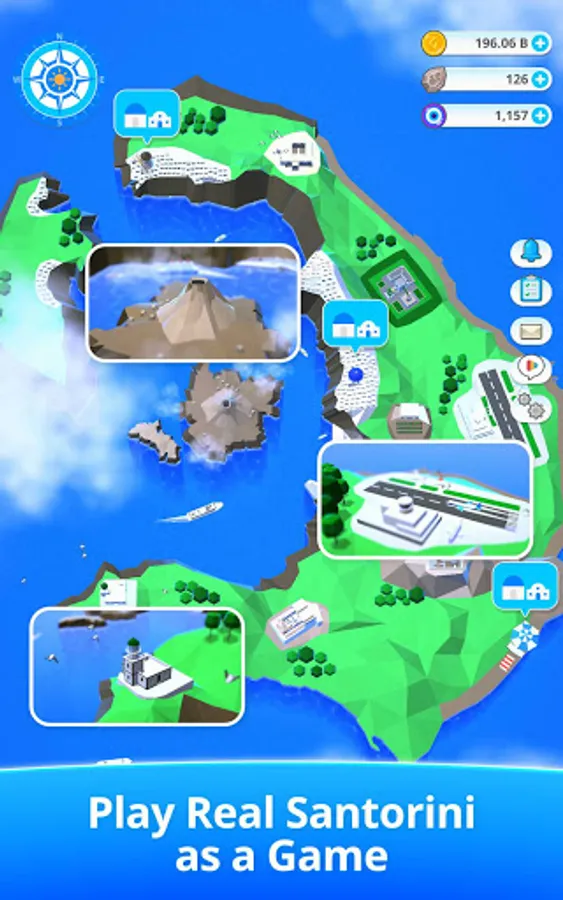 In order to bring the beauty of Santorini into the game, our team headed to Santorini. We walked an average of 16,000 steps daily for a week and worked diligently to observe the island's details. While seeing major tourist destinations, landmarks, and beautiful scenery, we have captured photos and videos. With over 200,000 photos and video data collected, we were able to implement Santorini's major tourist destinations, beautiful villages, and buildings as game content. We hope that you will be able to feel the beauty of Santorini with its bright sunshine and deep blue of the Mediterranean Sea, wonderful caldera views, beautiful villages, landmarks, historic sites, museums, and colorful sandy beaches!
