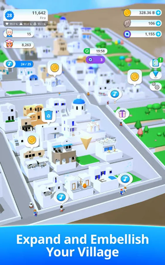 ● Expand the village to unlock new buildings, villages, and tourist destinations