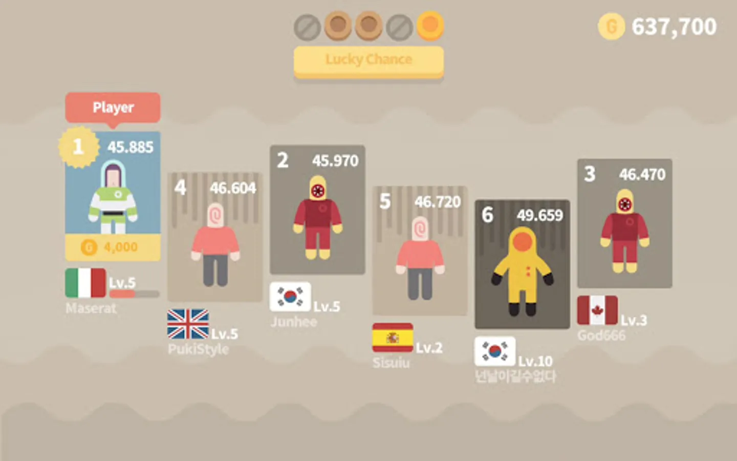 - Race among 6 cosmonauts