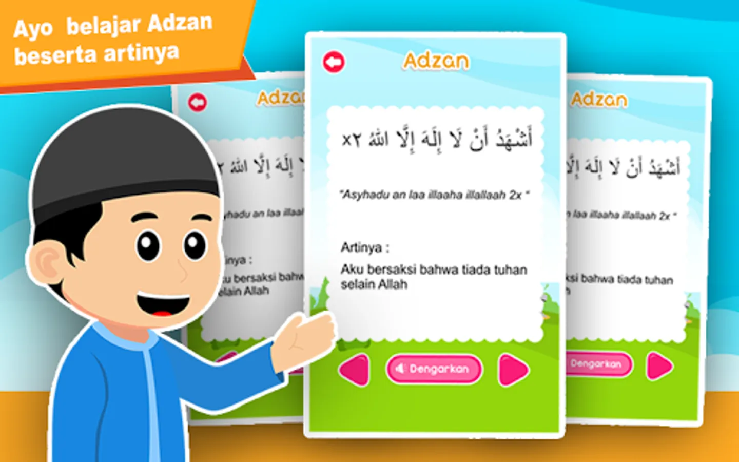 In learning Athan most of the children had had enough with listening azan call to prayer-clanging, but whether it is effective to determine the length of the short readings, spoken pronunciations and meanings contained in the adhan ?, certainly not. Therefore application entitled Learning Education with full Adhan is present.