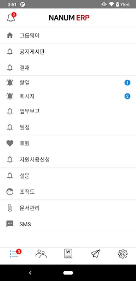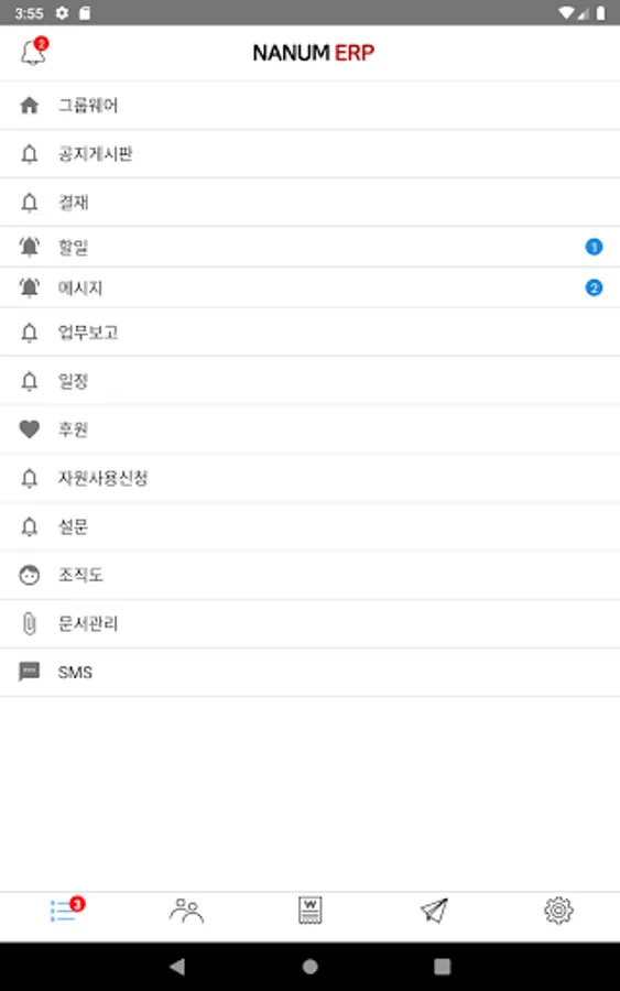 It informs you of notifications generated by Nanum ERP to help you quickly progress in the foundation work.