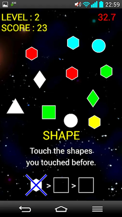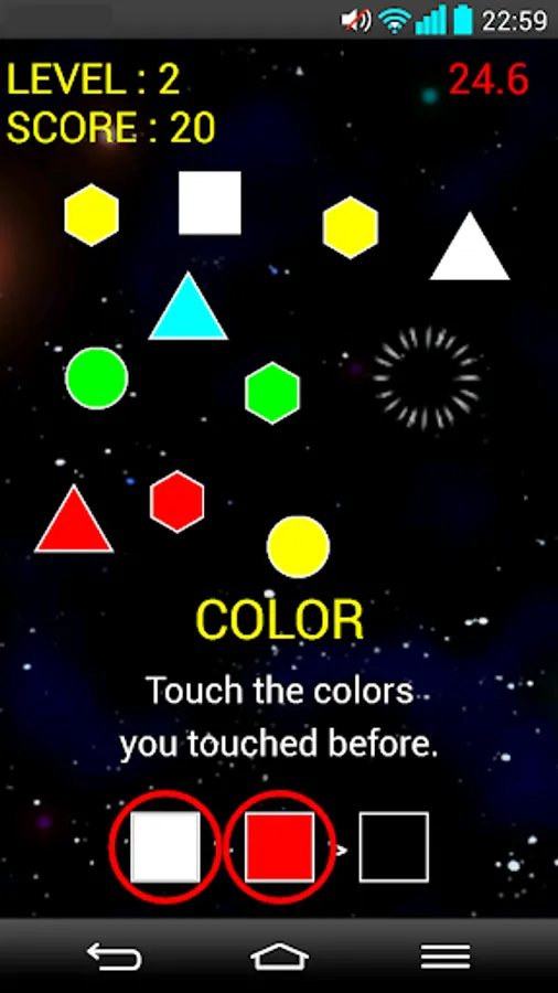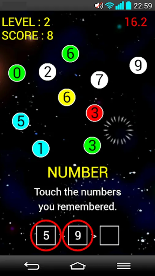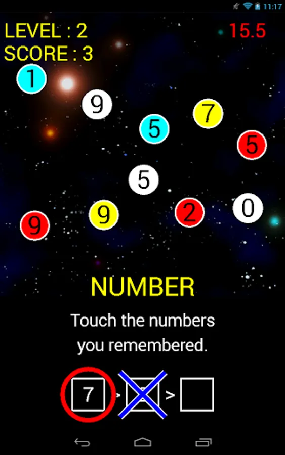 You will continuously memorize numbers, colors, and shapes. And find the remembered objects and touch them quickly. At the same time, you have to memorize the next objects.