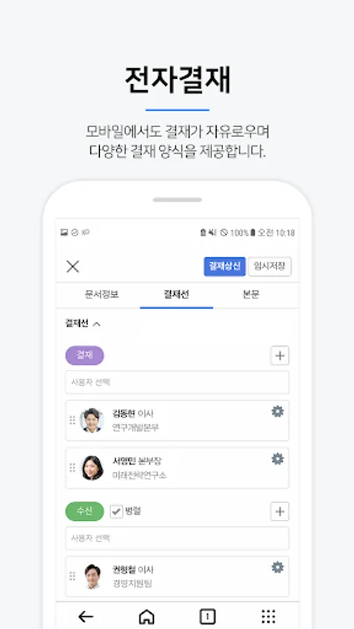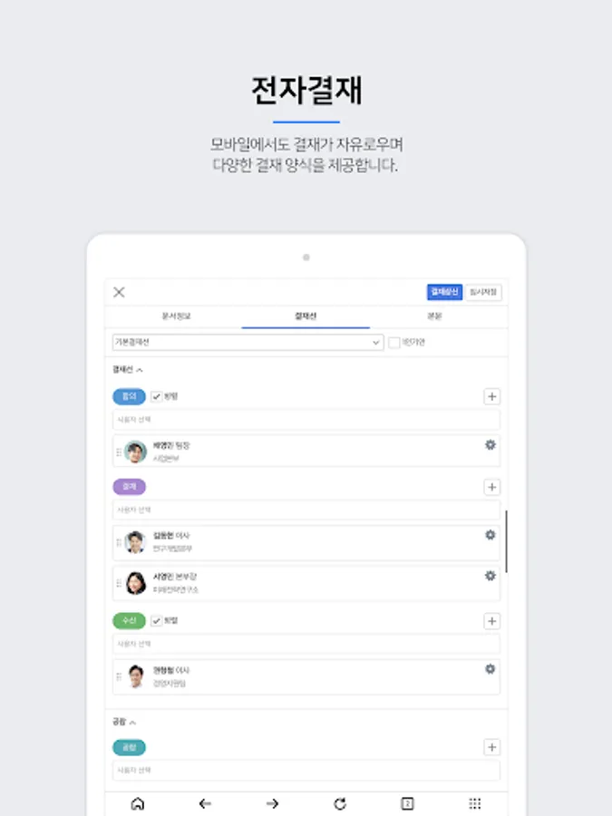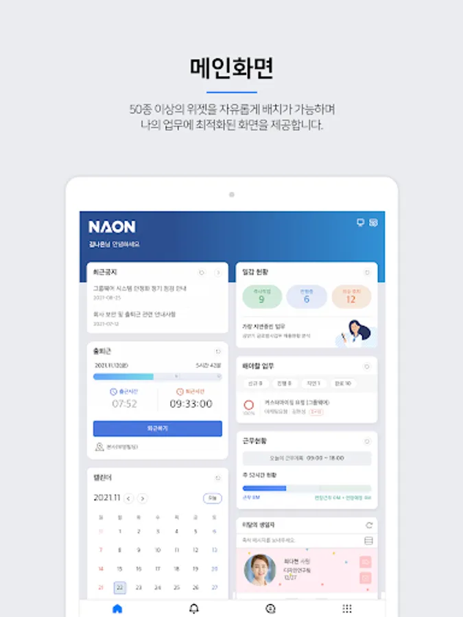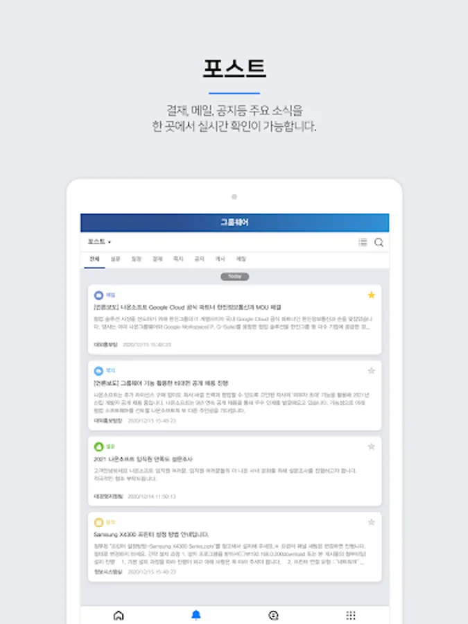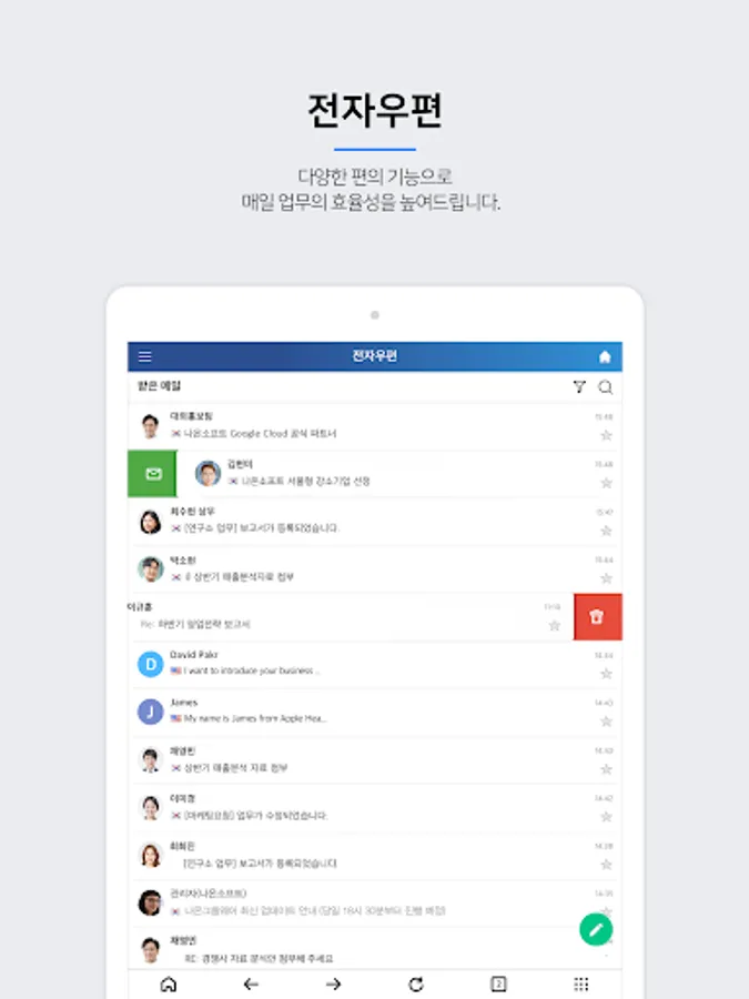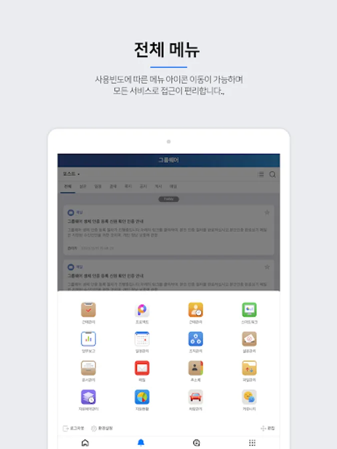 -You can freely use the main services provided by groupware such as e-mail, electronic payment, schedule management, bulletin board, and employee's address book in a mobile environment to check and process tasks without time and place restrictions.