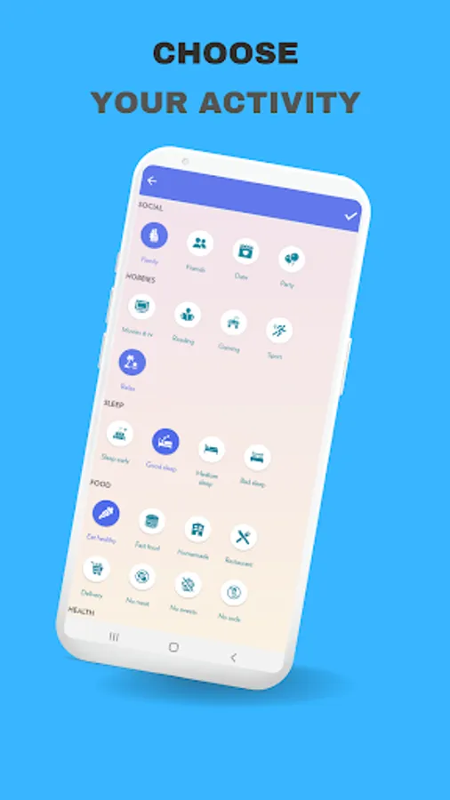 - Diary MoodON - Mood Tracker. You can choose various activities that have been provided.