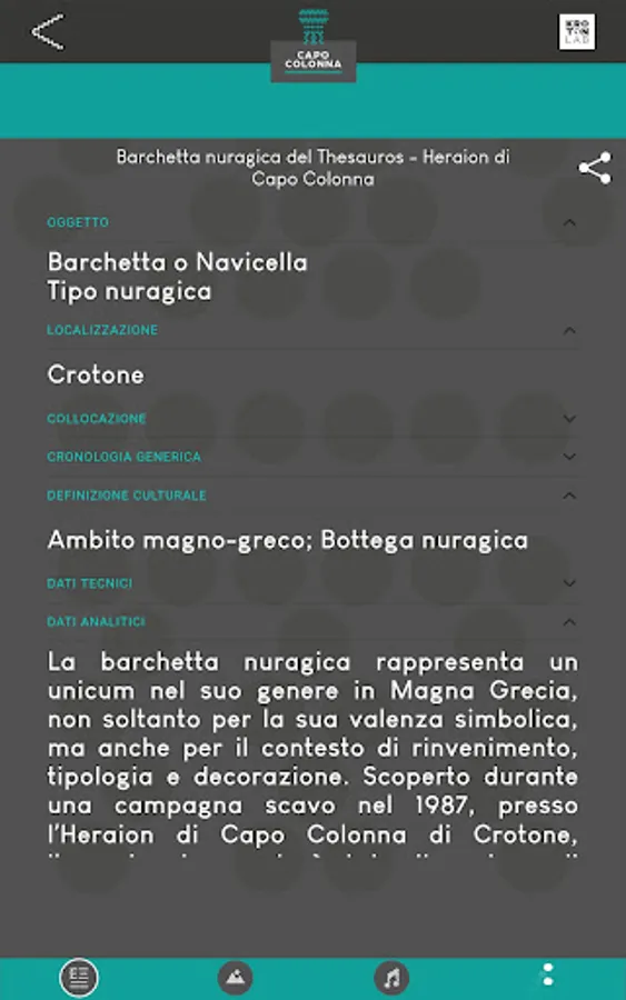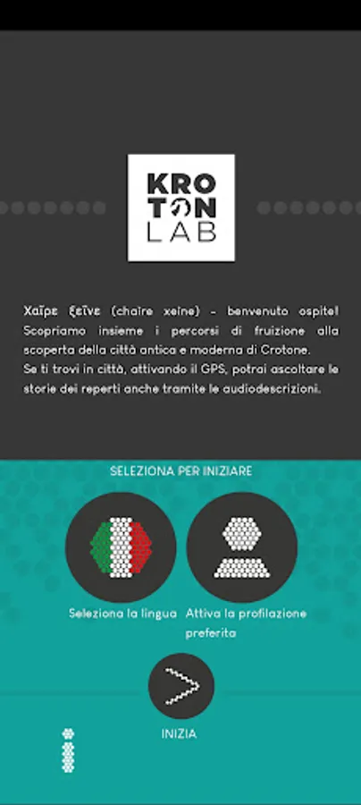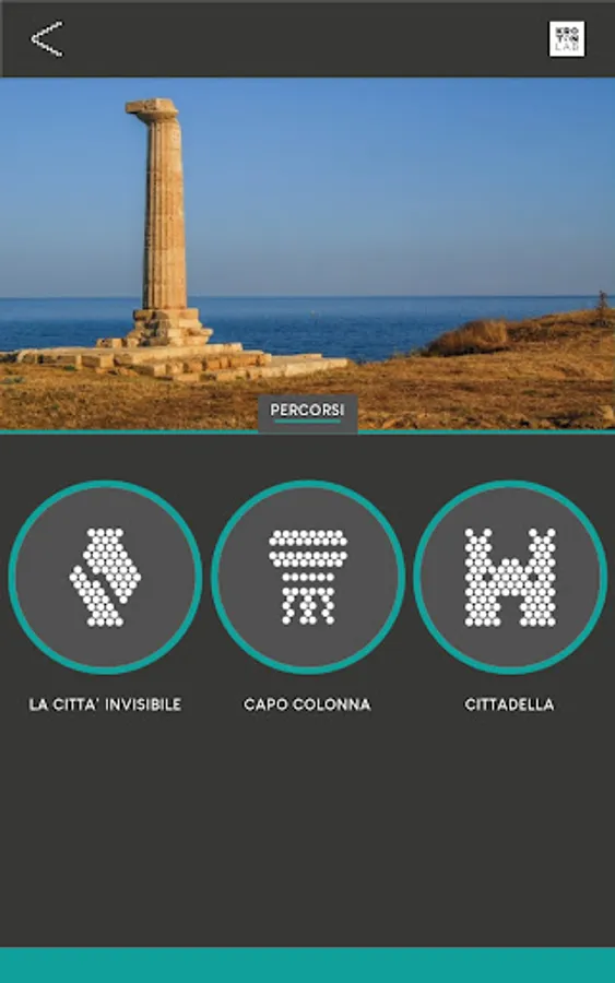 Kroton Lab (Living Lab Calabria Region) was created to offer new ways of receiving cultural heritage dedicated to citizens and visitors who come to the city of Crotone. To lead users not only to a wider knowledge, but above all to a greater awareness of the archaeological importance and the millenary culture of the area. The Kroton Lab mobile app that allows you to follow three tour routes, "Capo Colonna", "The invisible city" and "The Citadel", within which you will find the stories of the finds exhibited in the national archaeological museums of Crotone and Capo Colonna and the architecture of the citadel, located in the historic center of the city. In addition, for those who are in the city by activating the GPS, they can listen to the stories of the finds also through the audio descriptions!