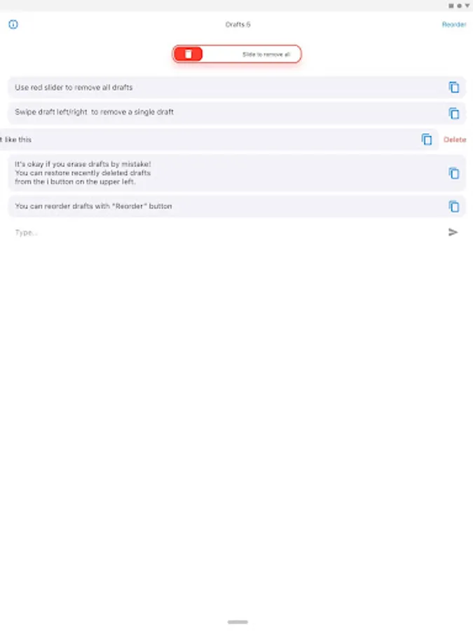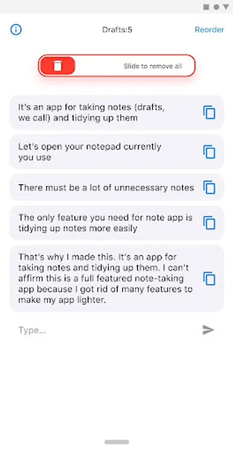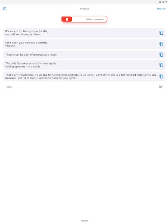That's why I made this. It's an app for taking notes and tidying up them. I can't affirm this is a full featured note-taking app because I got rid of many features to make my app lighter. It's more like draft than note what you can take with this app is. So, I named this "DraftDog". Why "Dog"? Because doggies are cute.