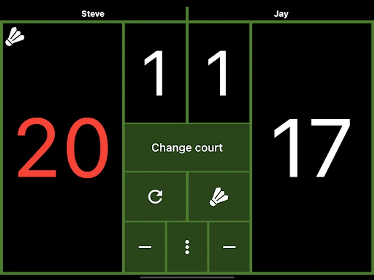 When the setting is turned on, the shuttlecock icon will be displayed on the score of the team that scored the point. For now, it is not supported when points are deducted (when the minus button is tapped). If the team that has the right to serve is wrong, you can replace them by tapping the shuttlecock icon in the middle of the screen.
