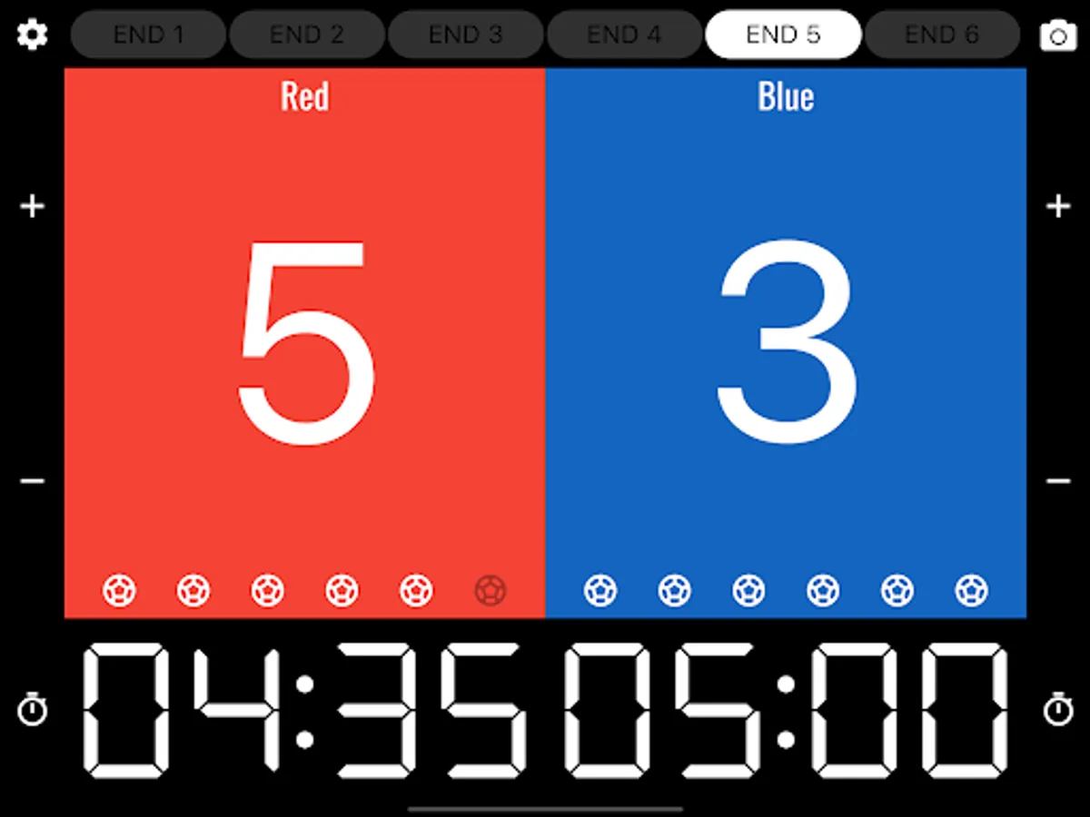 It is simple and easy to use, and the team name, number of ends, and time limit can be changed.