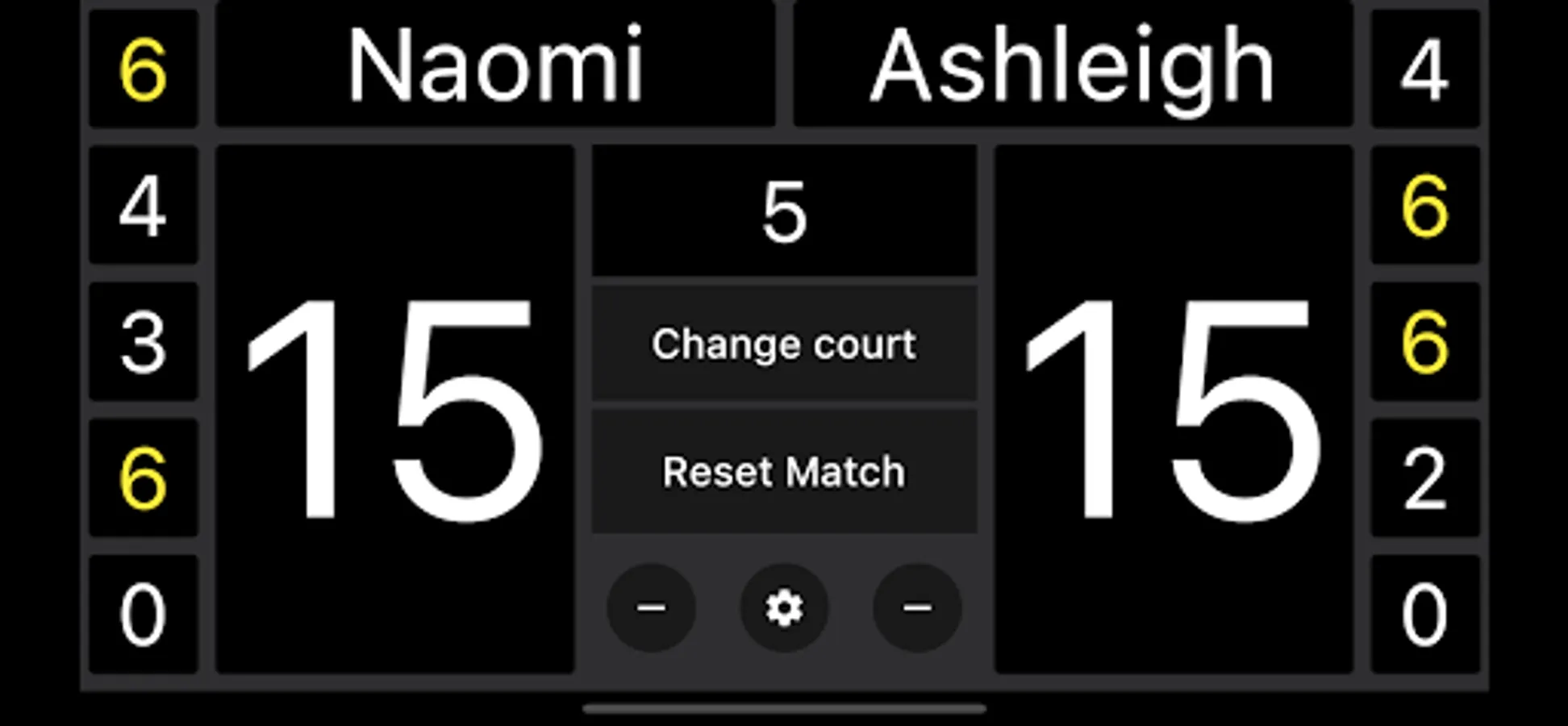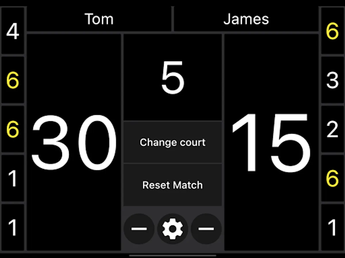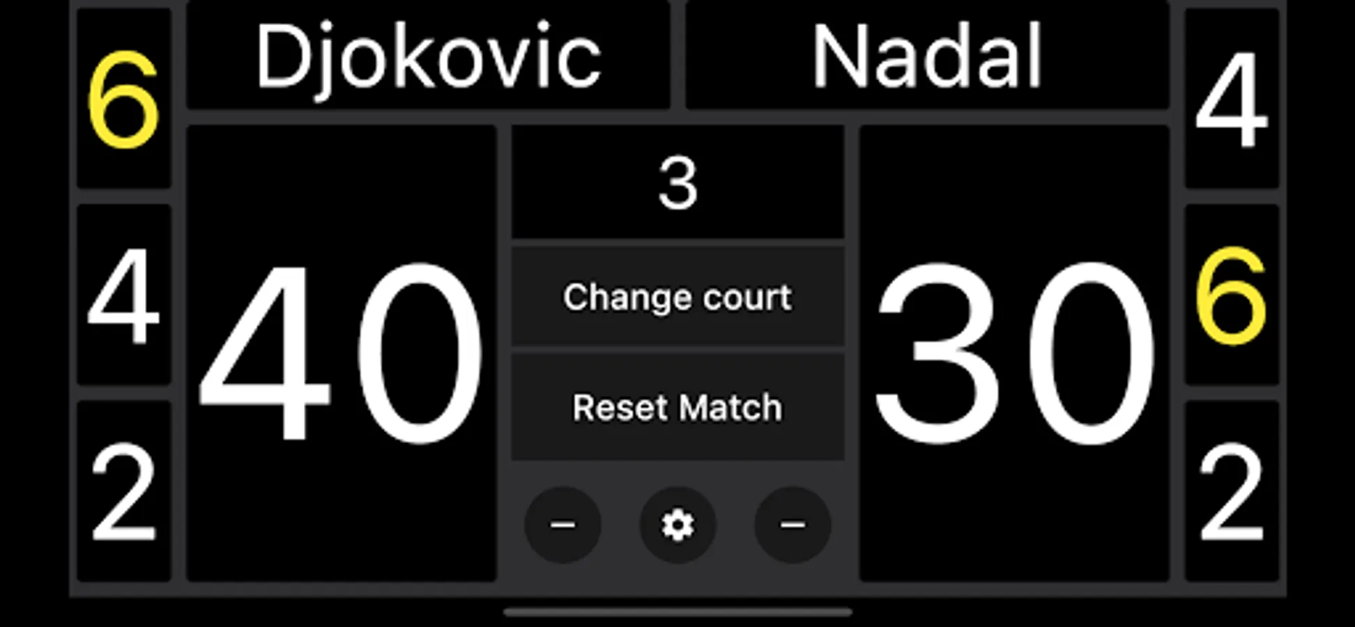 It supports 3-set matches and 5-set matches, and allows you to input player names, court changes, and more.