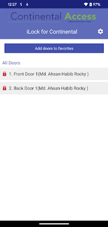 The "iLock for Continental" works in conjunction with the Continental Access CA4K software. The iLock app communicates to Architech series locks that contain Bluetooth LE technology. In addition, the iLock app communicates to a Bluetooth Reader Module, that wires in parallel with a standard weigand reader, making the reader bluetooth enabled. The iLock app provides the ability to enroll standard credentials, in addition to a maintenance (admin) credential. The maintenance (admin) credential provides the ability to change the default settings in the bluetooth reader module. Upon selecting an enrolled Door in the app, an Unlock icon will display to unlock the door. The iLock App also provides an "Unlock When Near" feature.
