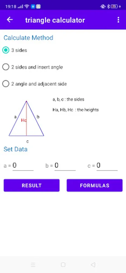 - Triangle calculator : with it you can calculate sides, angles, heights,