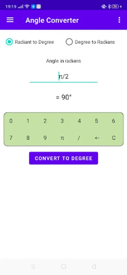 - with angle converter you can convert radians angle to degree angle or degree to radians with pi syntaxe