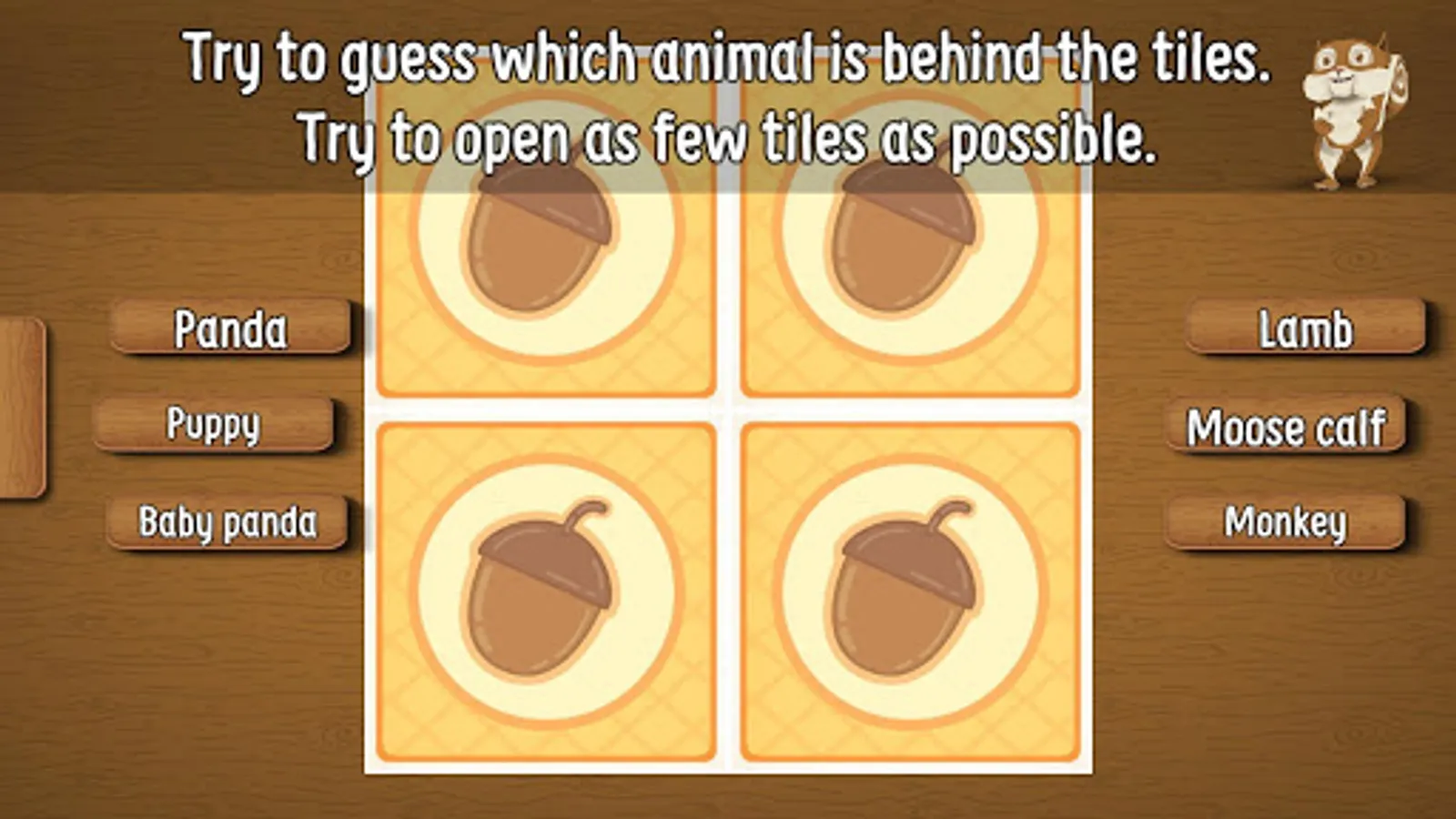 Can you guess what animal Lucky is hiding behind the tiles? Collect stars by opening as few tiles as possible to reveal the animal. Play again to beat your best time. Game has multiple difficulty levels, making it suitable to toddlers and older kids.