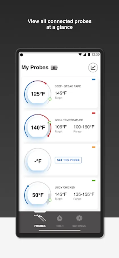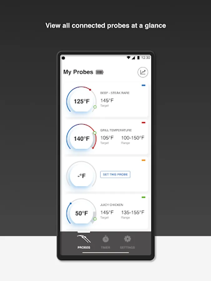 - The App allows users save preset or custom cook profiles for easy future probe setup.
