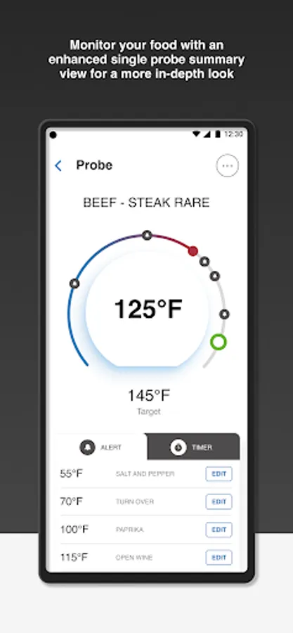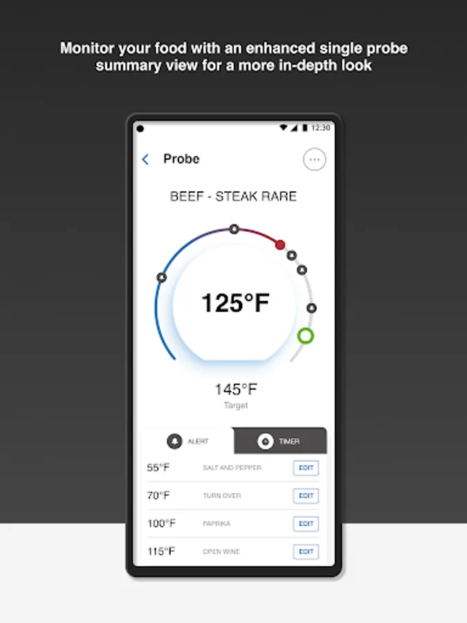 -The App allows users setup custom temperature alerts during the cooking cycle.