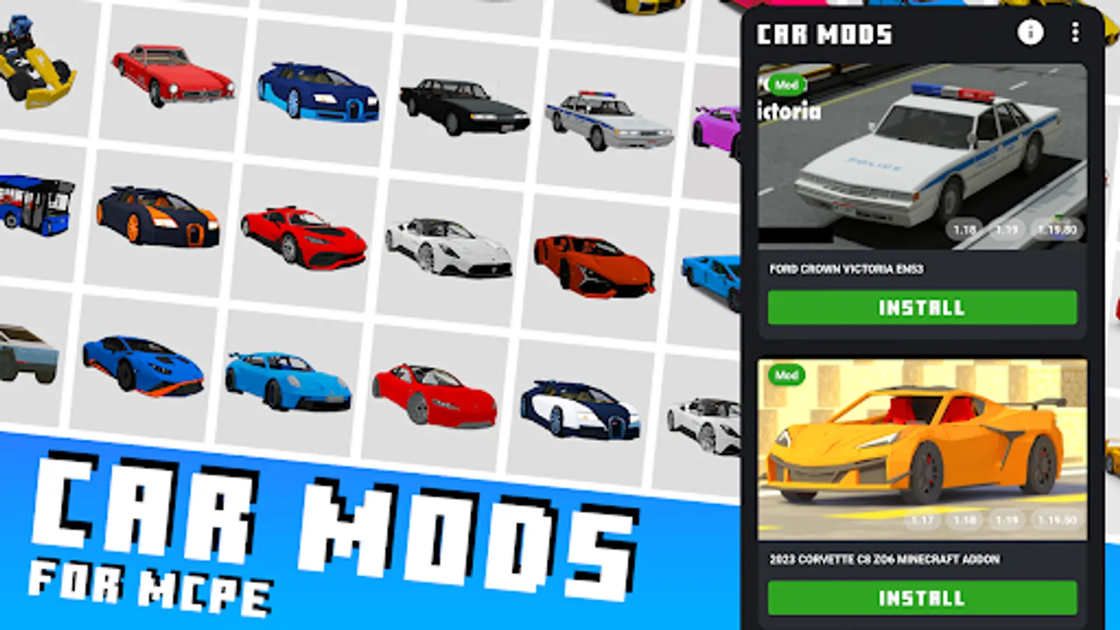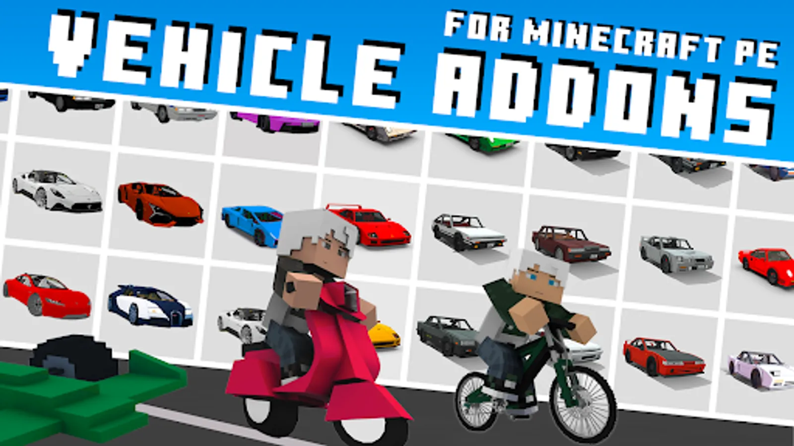 Car mods for Minecraft PE are addons that add various vehicles to the game, from regular cars and motorcycles to legendary supercars. With car mods, players can quickly travel around the game world and enjoy a realistic view of transportation and engine sounds.