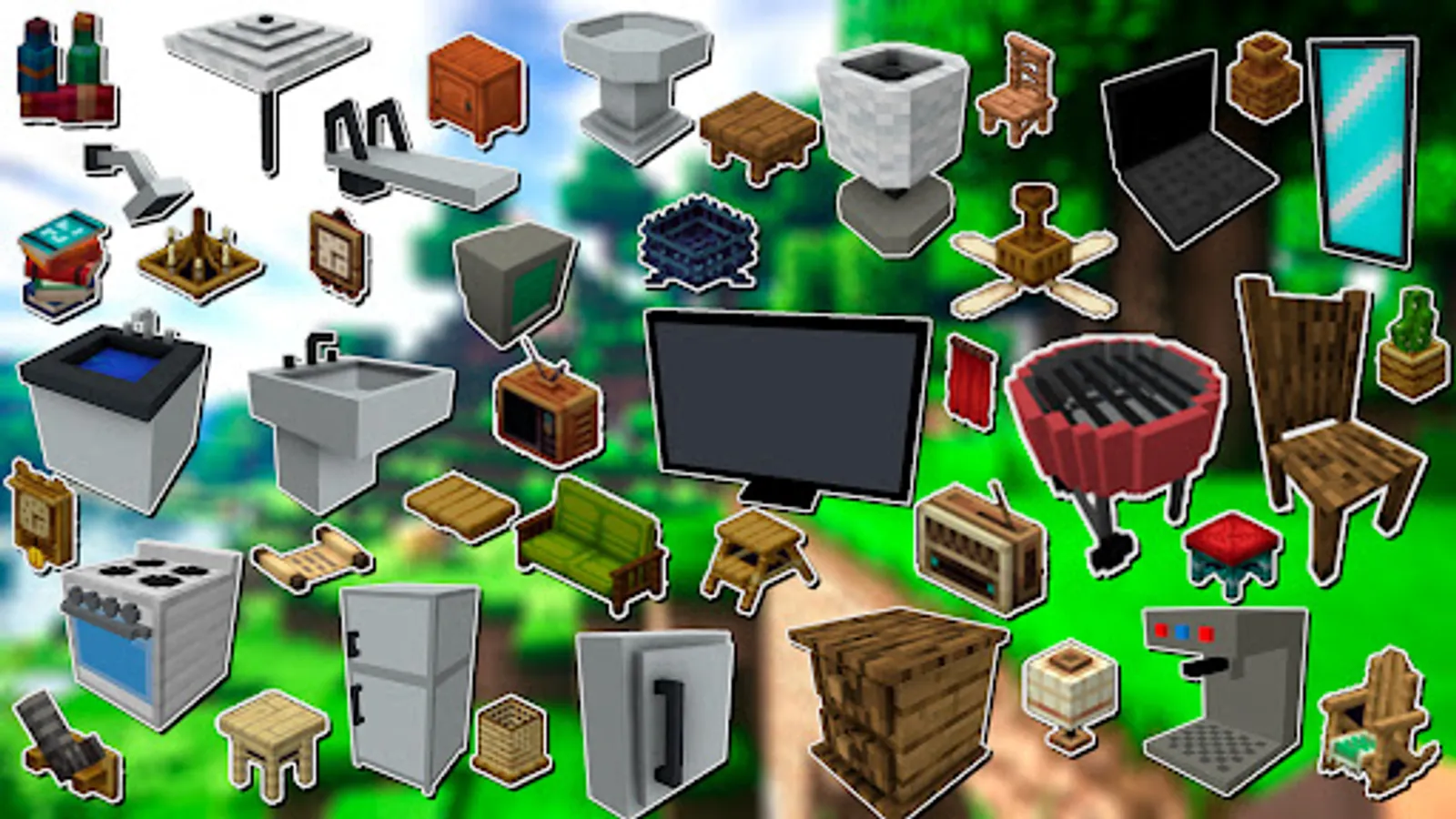 Create your dream home in creative mode. Furnish your study, playroom, kitchen, living room or toilet. With furniture mods, you can create incredible design interiors. Sofas, armchairs, chairs to sit on. Refrigerator, oven and other kitchen appliances that you can interact with. An electronics mod includes devices such as a computer, TV, microwave, and so on. You will also find mods with outdoor items, including ornamental plants, garden furniture and what you need for a pool party.