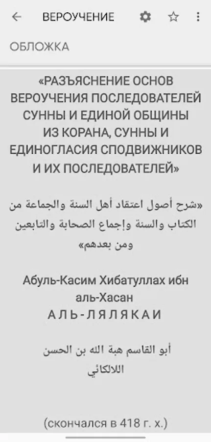 Imam, hafiz and outstanding scholar Abul-Qasim al-Lalqa'i, the author of this book - "Explaining the fundamentals of the dogma of the followers of the Sunna" - one of the scientists through whom Allah preserved the dogma of the community, since this book contains many statements of the predecessors regarding the dogma . Also, the book is a correct methodology in understanding the Islamic creed.