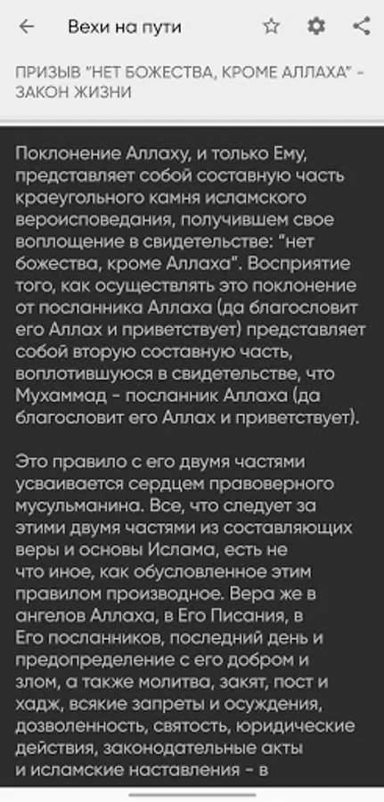 This rule with its two parts is assimilated by the heart of a devout Muslim. Everything that follows these two parts [shahada], which constitutes the basis of the Islamic faith, is nothing but a derivative conditioned by this evidence. Belief in the angels of Allah, in His Scriptures, in His messengers, the last day and predestination with its good and evil, as well as prayer, zakat, fasting and Hajj, any prohibitions and expression of condemnation, permissiveness, holiness [of this or that action], legal regulations, statutes and Islamic precepts are all based on one thing: the worship of Allah, and only Him. The source of all this is what the Messenger of Allah (peace and blessings of Allaah be upon him) told us from his Lord [Holy Quran] ...