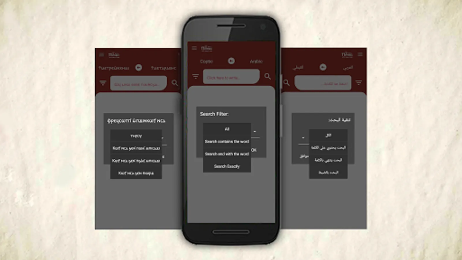 You can translate words from Coptic to Arabic and vice versa but that's not all more languages will be available later so you can learn and discover more words.