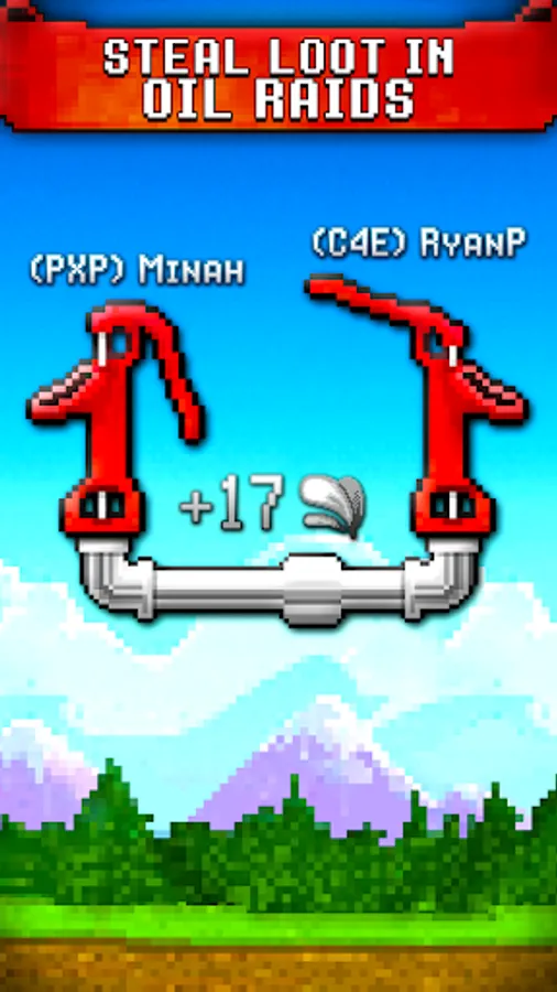 Form a clan and compete in the oil conquest. Mine oil the old fashioned way, or raid other players and pump away their oil in a head-to-head battle of raw tapping skills.