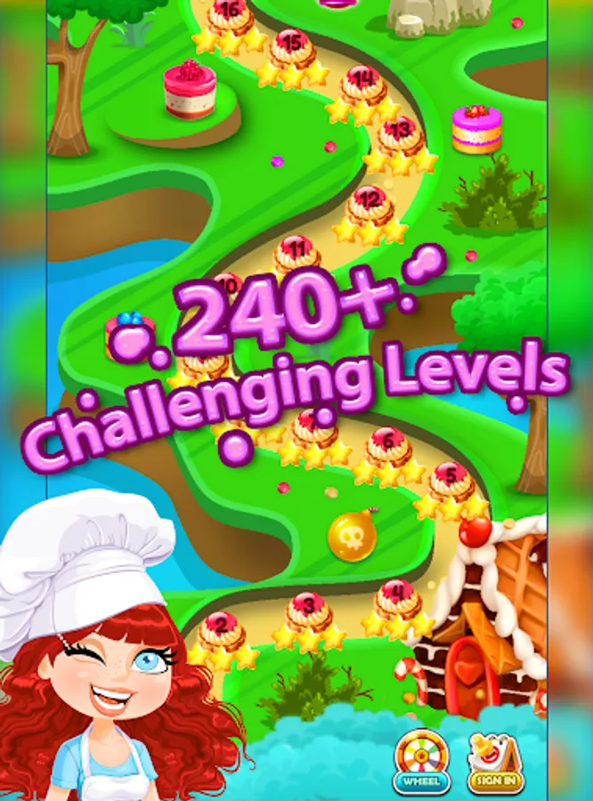Different kinds of boosters, daily rewards and luck spin are available on the match 3 game in addition to hundreds of levels. Win coins for every completed level and use them to buy boosters and lives. Lucky spin and Daily reward offer you a chance to win much more coins. Boosters are your friends helping you to pass the hard levels in the candy land. Give your best to match and to blast candies and make it the game of life.