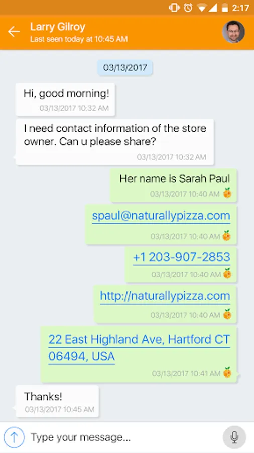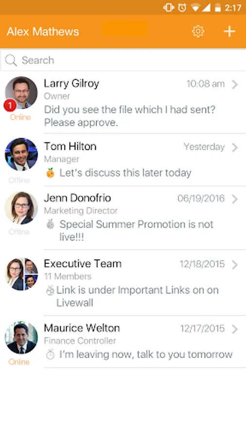 Chat application allows one to one and group chat communication between corporate and franchisee users. You can share images, send audio messages and videos with your contacts. Create and modify chat groups, search for contacts and groups you want to chat with and see whether a contact is online or offline and when it was last seen. View profile information of your contacts and send them emails or make a call.
