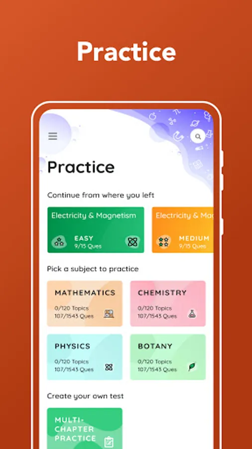 Tightly Coupled with Narayana’s curriculum (Micro-schedule), Practice feature helps the user to learn each topic through synopsis and Weekly Assignments.