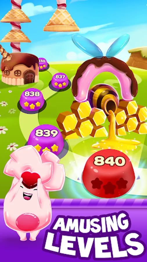 Take a journey to fantastic and shining sweet gummy lands. Start your match 3 puzzle adventure on sublime candy kingdom separated into different seasons and burst gummy candies of icy, greeny lands filled with delicious cupcakes, tasty donuts, chewy taffy, and dashy bonbon. Create sugar combo , juicy twist , and striped milk gummy to dash more jelly , yummy and scrumptious gummy to be the best candy smasher.
