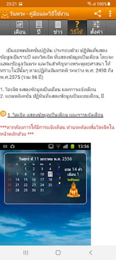 วันพระ เป็นแอพพลิเคชั่นปฏิทิน ที่ประกอบด้วย ปฏิทินที่แสดงข้อมูลเป็นรายปี และวิดเจ็ตขนาด 4x2 และวิดเจ็ตขนาด 3x2 ที่แสดงข้อมูลเป็นเดือน โดยจะแสดงข้อมูลวันพระ และวันสำคัญทางพระพุทธศาสนา ให้ทราบในแต่ละปี ตามปฏิทินจันทรคติ ระหว่าง พ.ศ. 2490 ถึง พ.ศ.2575 (รวม 86 ปี)