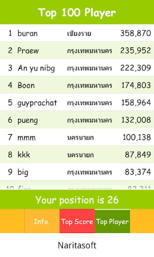 There are also Top 100 Score (Top 100) and Top 100 Player (Top Player). With the highest points).