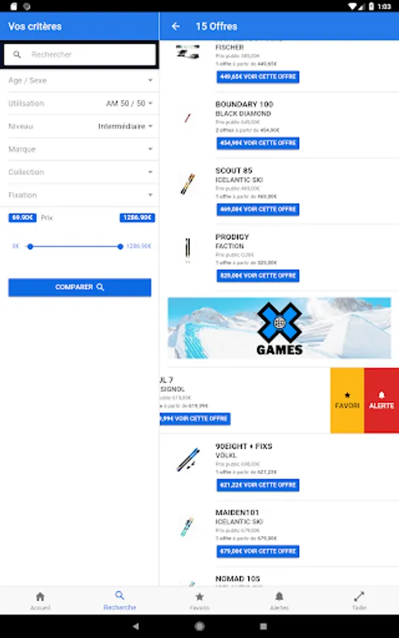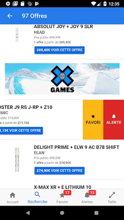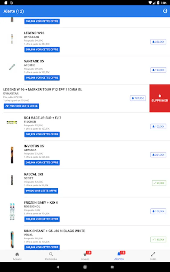 By creating price alerts on your favorite skis, you will be notified when the desired price is reached.