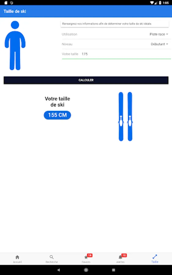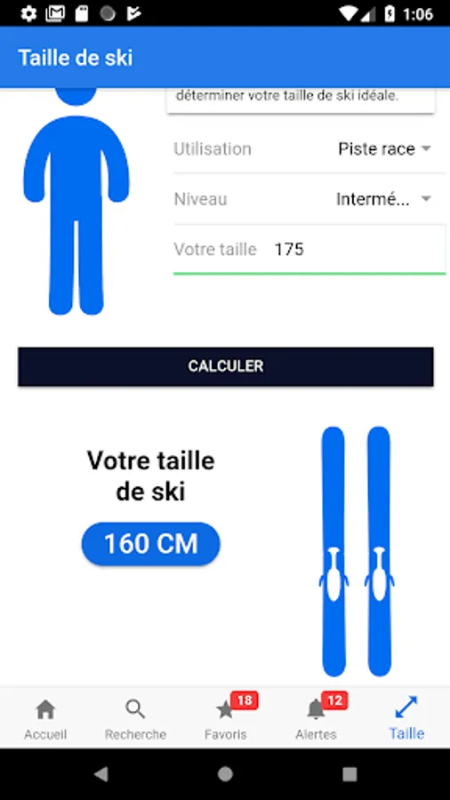You have access to a ski size calculator that is based on your criteria: size, level and ski practice.