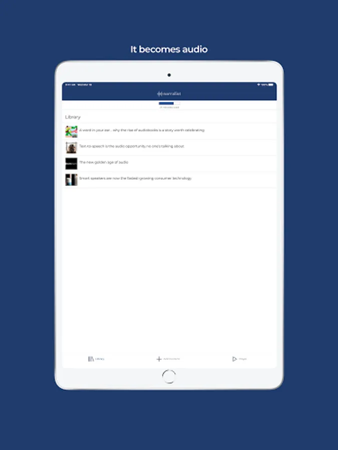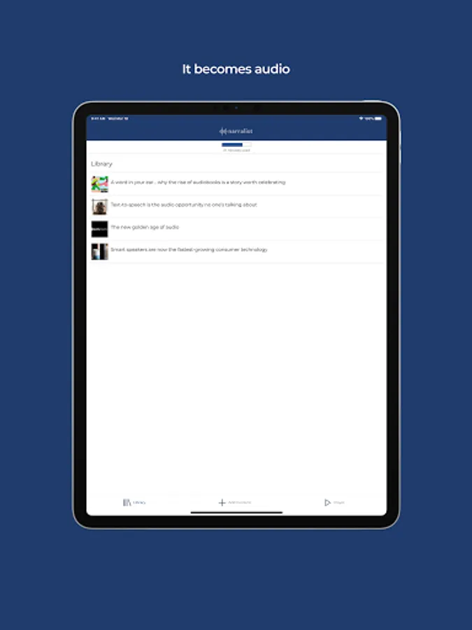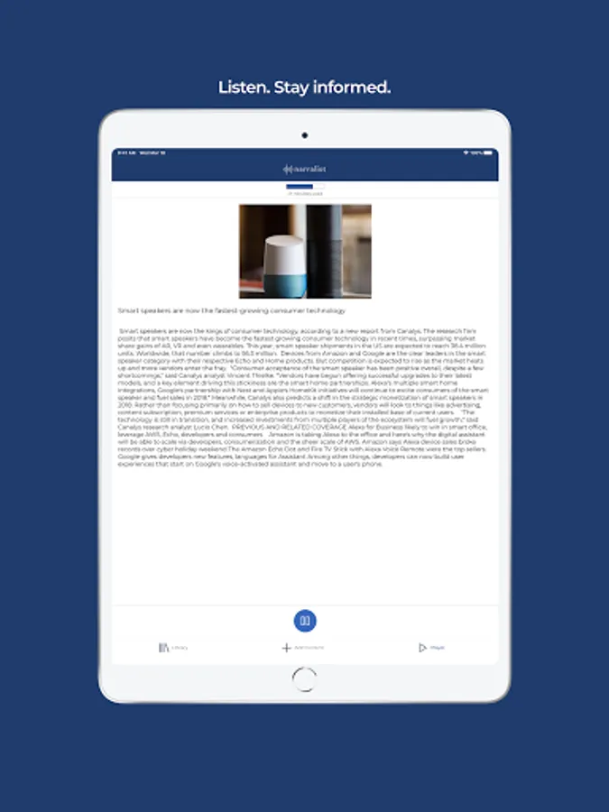 Meet Narralist – your personal narrator. Narralist reads anything. All you have to do is listen. Stay up to date on news, articles, posts, feeds, documents, or anything else you can read. Listen while you do other things.