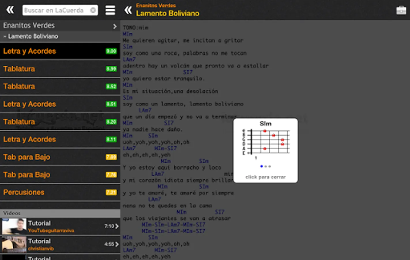 This App will give you FREE, ultra fast access to the most complete Guitar Tab Archive in Spanish: LaCuerda.net. You will find over 100,000 tabs & chords from thousands of artists from Spain and Latin America (and artists from other contries who sing in Spanish as well).