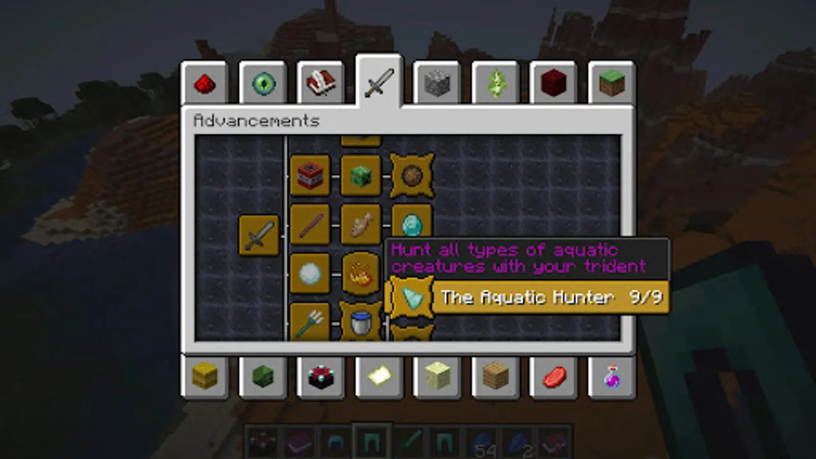 Advancement Advancement Pack is one of the essential progress datapacks ever made and to game one of the greatest and most highlight tool. It incorporates more than 1400 new headways to your world so you have got too many extra challenges to do in your survival world. ~ DISCLAMER This app is an unofficial app for Minecraft PE™. The Minecraft brand name and all Minecraft-related assets entirely belong to the Mojang Company. If you feel there are trademark violations which don't fall under the "fair use" rules, please contact us by email. According to http://account.mojang.com/documents/brand_guidelines.