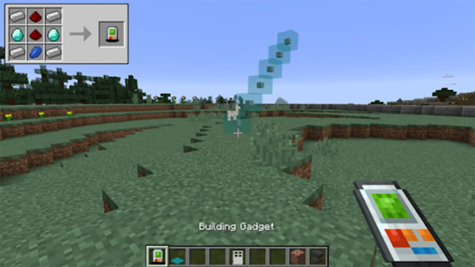 The Building Gadgets mod is easy because it puts lots of new blocks in the game. Using these blocks, we can create new and improved buildings with different shapes. There are energy blocks that are very strong and used a lot in technology, machines, and energy. To make these blocks, coal and wood are burned on a table at the station. When we use up things, like gas or electricity, a line on the left side of the list goes up. This bar shows how much energy is in the Charging Station for you to use.