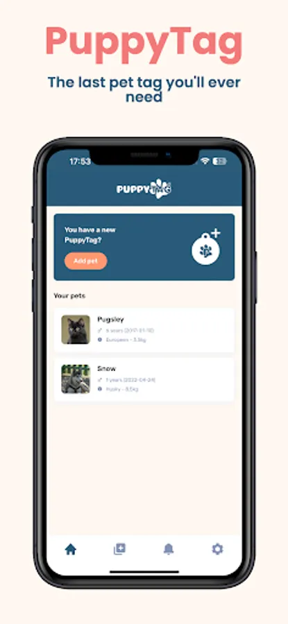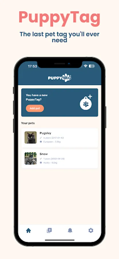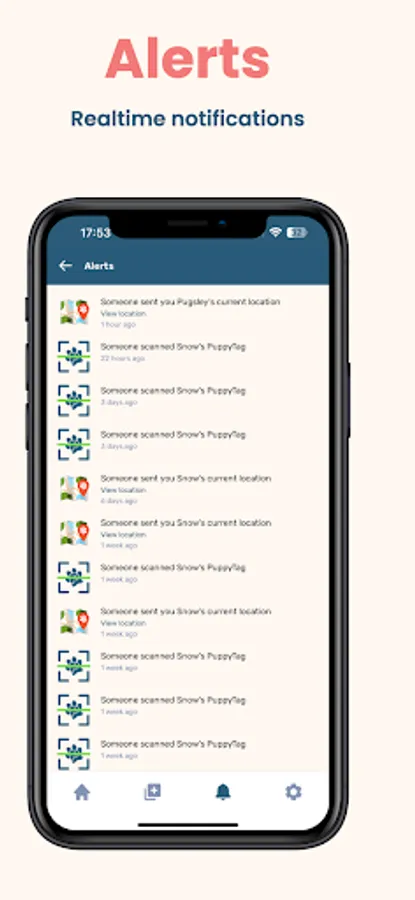 - Receive a notification every time your pet's PuppyTag is scanned.