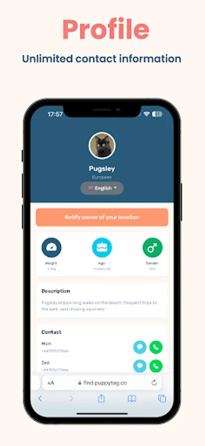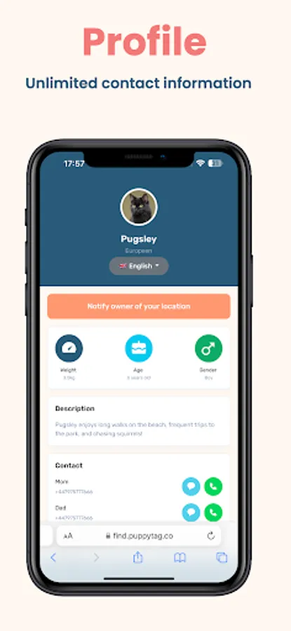 To benefit from all the power of this application, buy your PuppyTag in our online store: www.puppytag.co