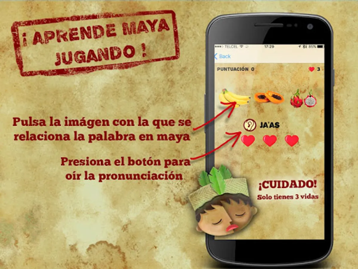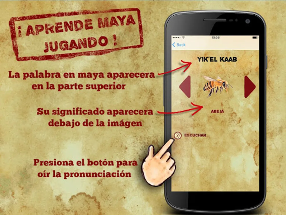 Playing Maya learning aims to teach the language of the Mayan language in the easiest way, simple and fun. The application consists of a section where you can consult with vocabulary and other dynamics and games where the user learns writing, pronunciation and meaning of the word.