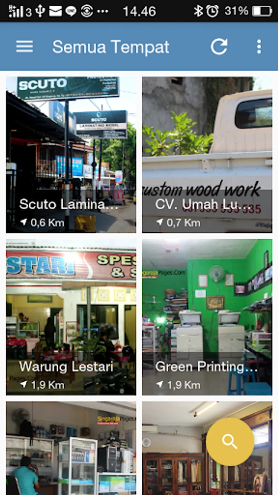 Penyuguhan application, including address information, no. phone, maps and distance from your current location.
