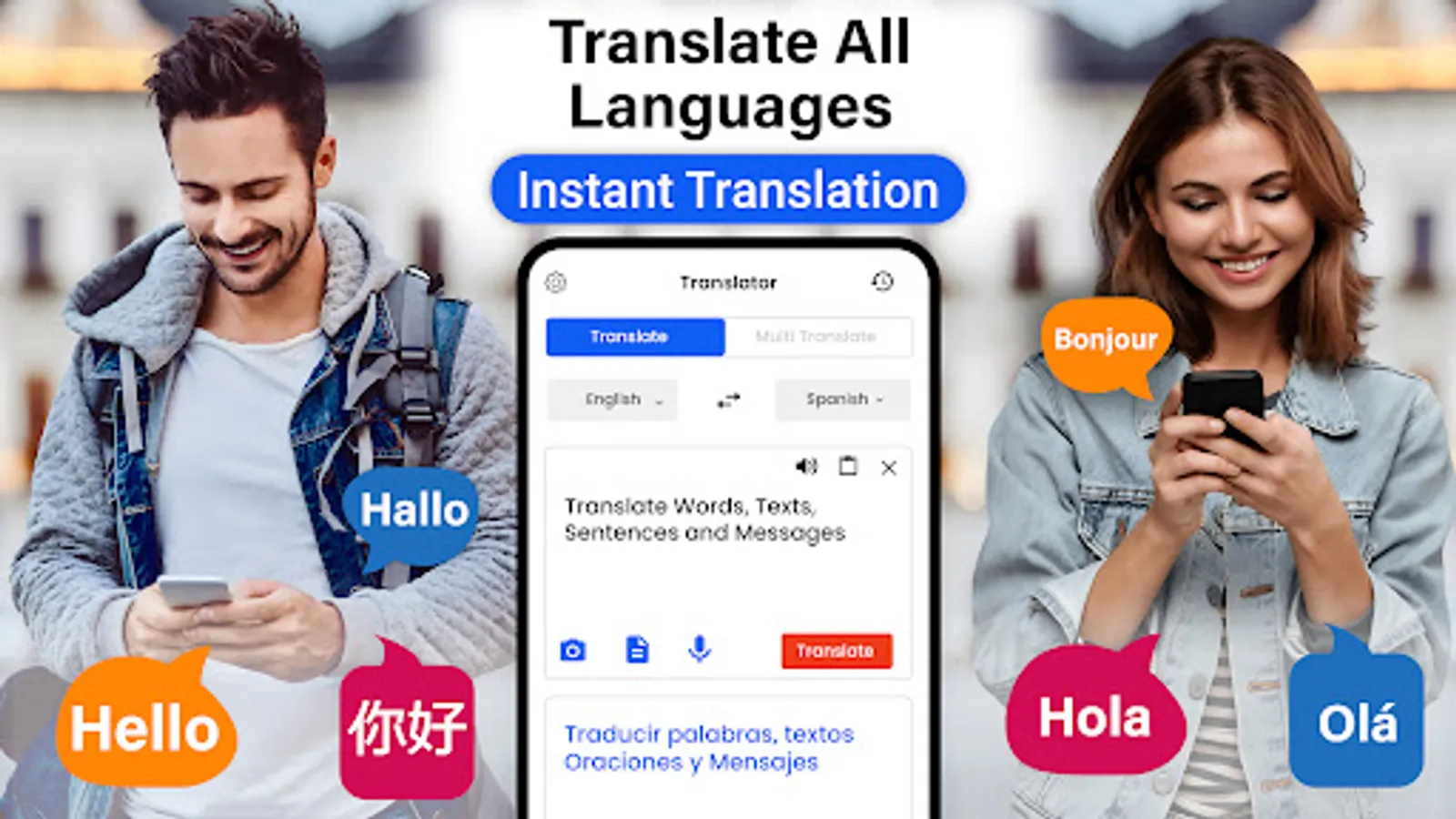 Voice translation: Use this US to Spanish talking translator with speak the words or phrases that you want from this smart translate app and translate all languages will convert your speech into text and provide you with instant voice translator app.