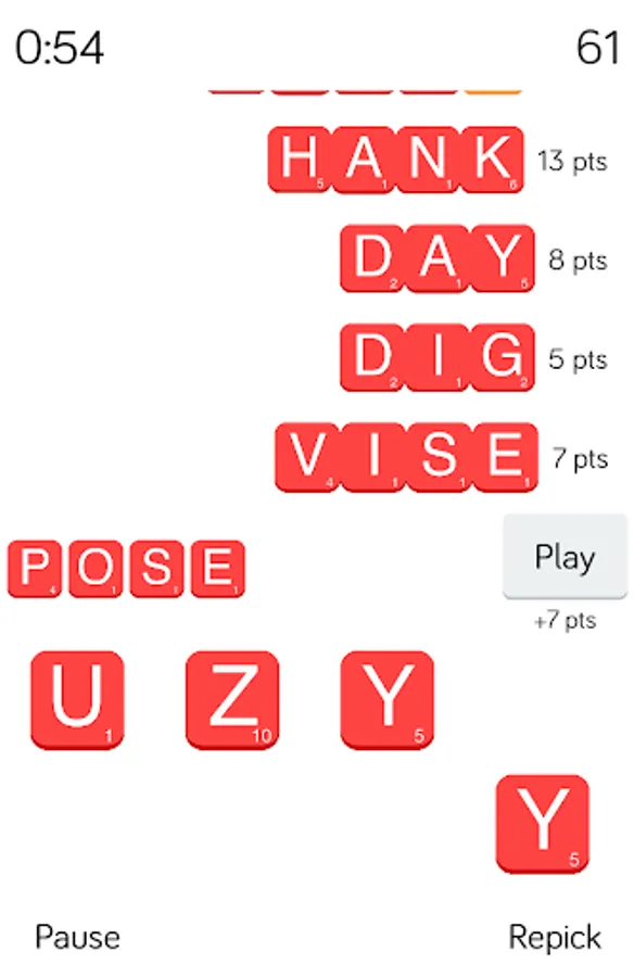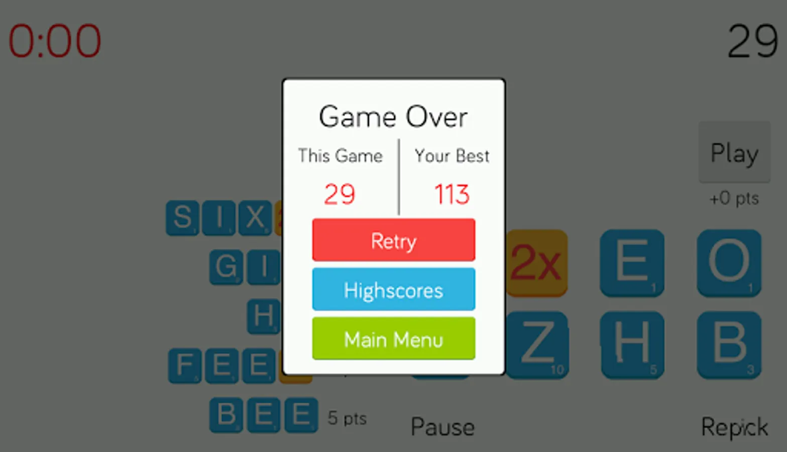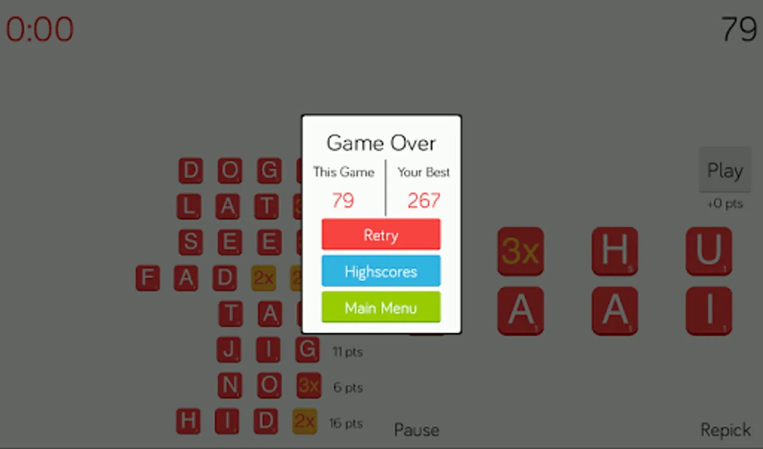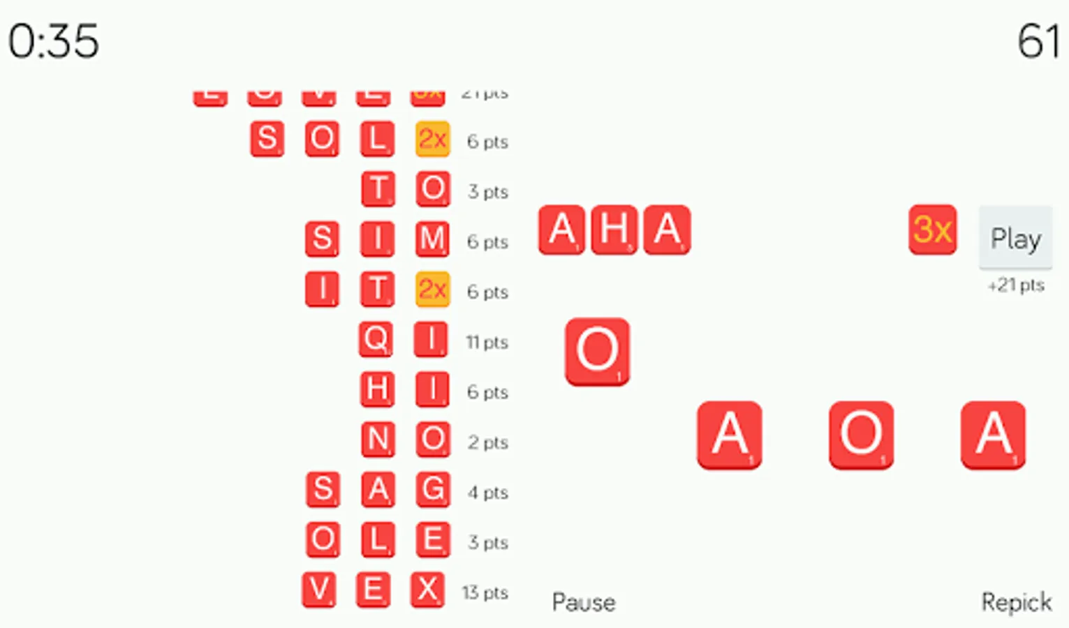 Play as long as you want, no clock involved! Leisurely spend time practicing for timed mode and enhance your word-building skills!