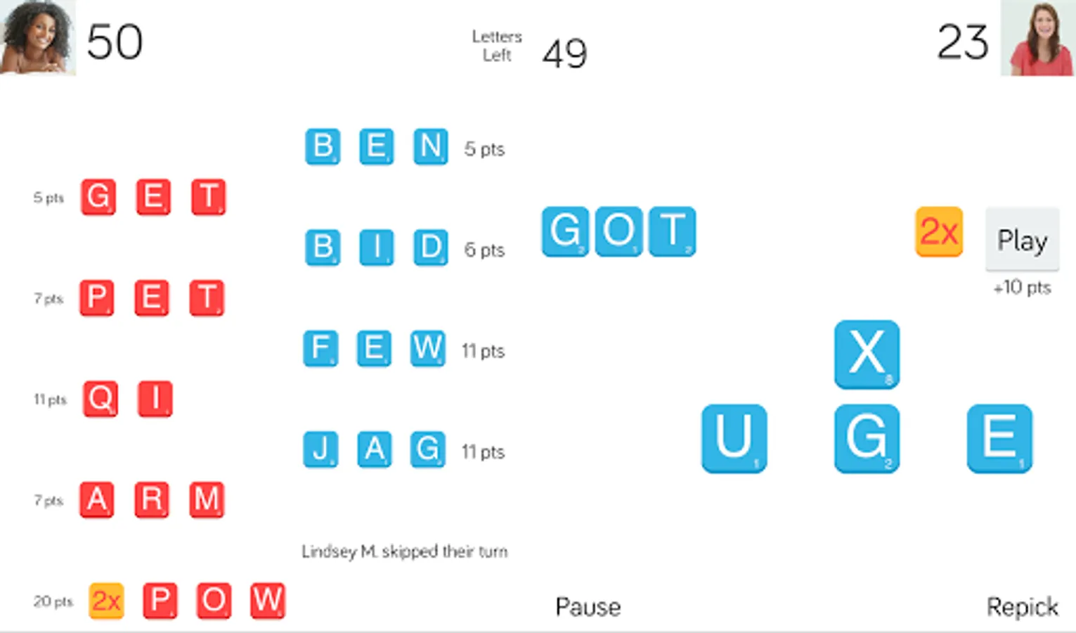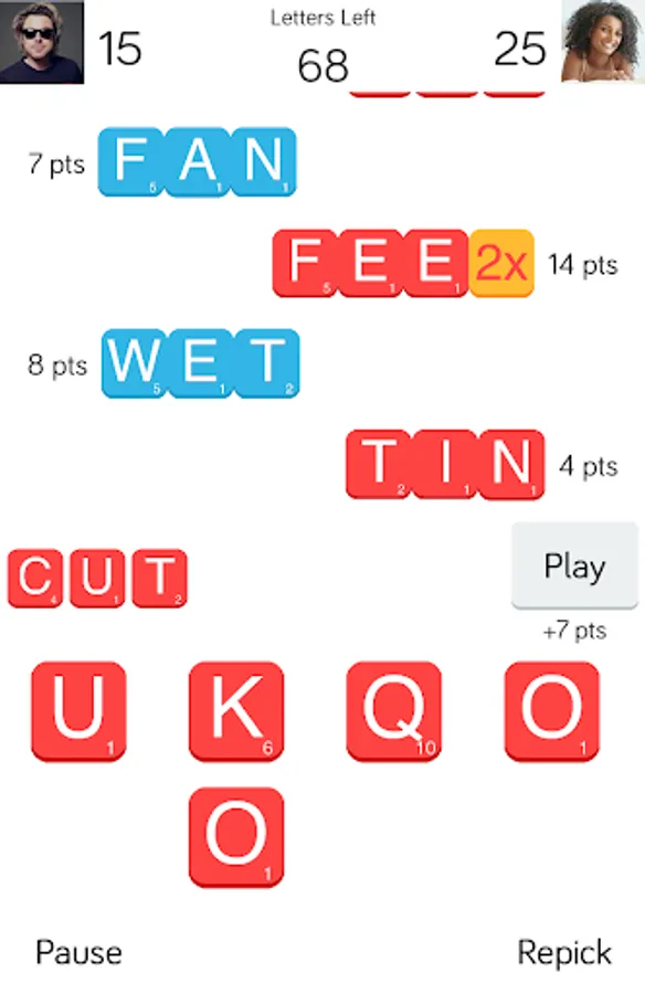 Play against your friends or random opponents from all over the world! Take turns playing words until the letter pool runs out. Whoever has the most points wins the game! Only available for Android 4.0+.