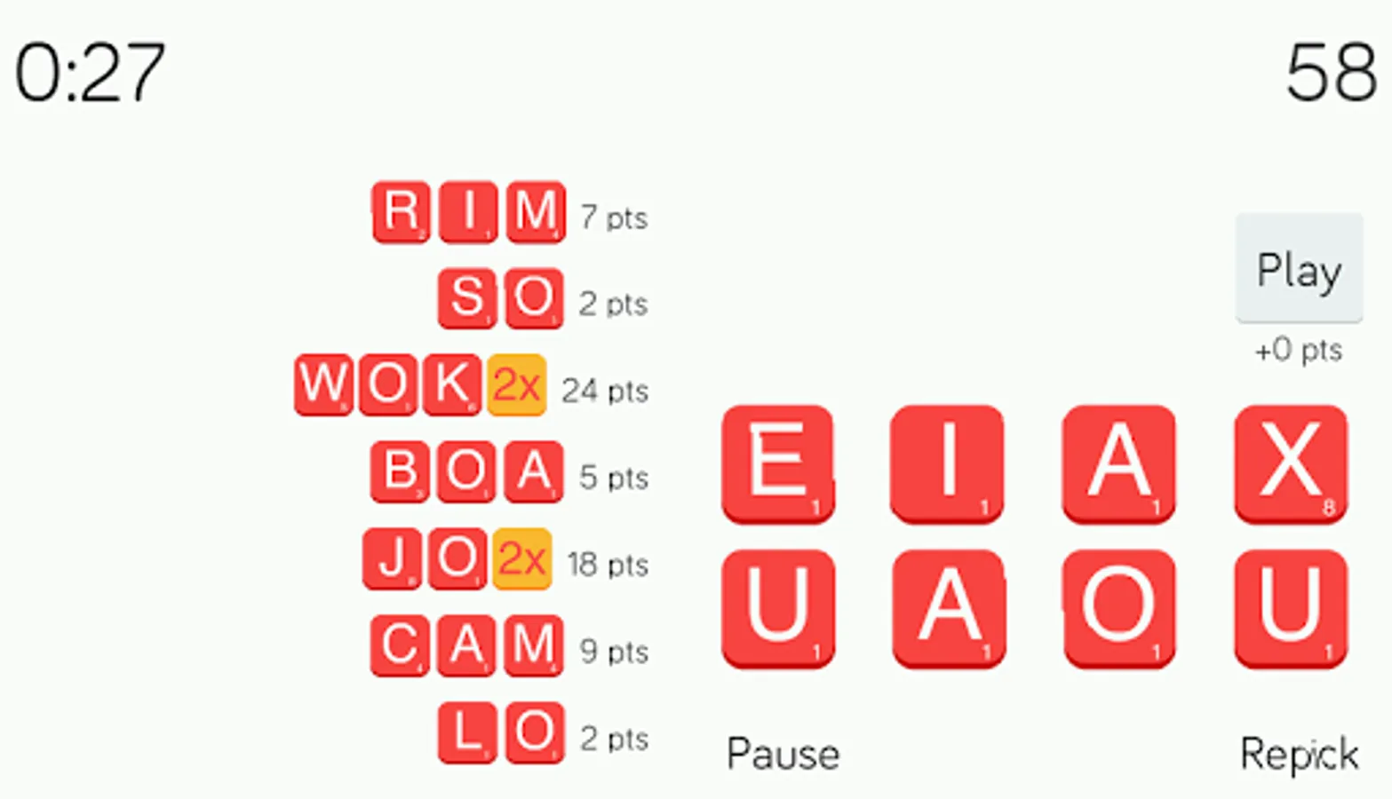 Given eight letters at any time, build words and earn points. The more words you make, the more fun you have!