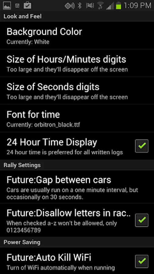 This app maximizes the size of the numbers that are most needed in a rally clock: the seconds. There are many, many clock apps in the Play market, none of the them make the seconds large like this app does.