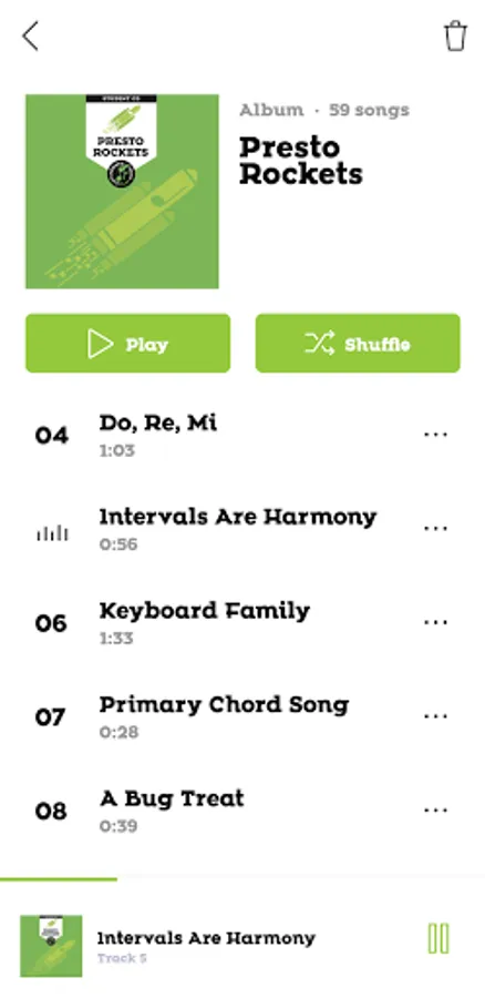 Access all the music from your current and past semesters. You can even shuffle or repeat tracks. Want to know why you're doing a certain song? The purpose for each song is listed as extra information so you can make the most of listening time.
