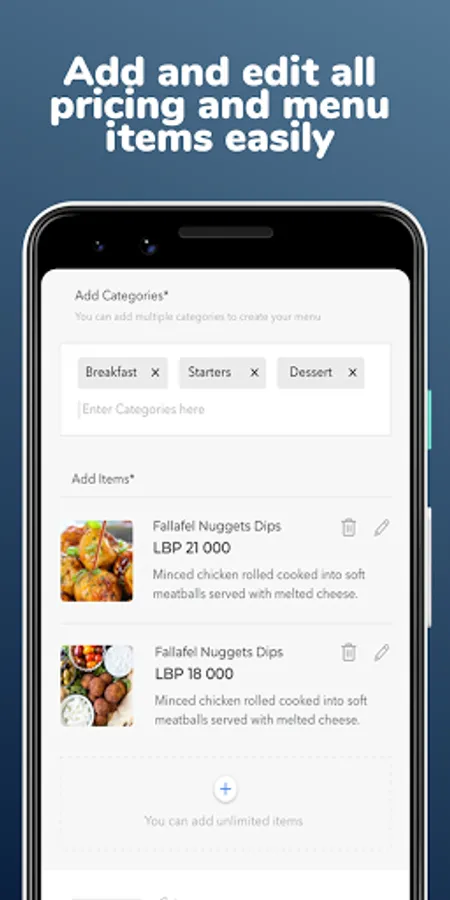 A state-of-the-art listing and pricing solution that provides menu-based businesses and retail shops an easy and dynamic menu listing solution as well as individual item pricing based on a barcode. Process is straight forward!